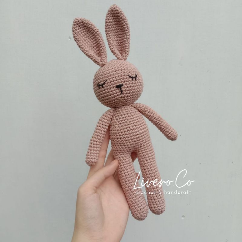 PRE ORDER Boneka rajut amigurumi kelinci dengan tinggi dari telinga tiba kaki 28 cm Material Benang katun Silikon fiberfill Cocok lakukan kado